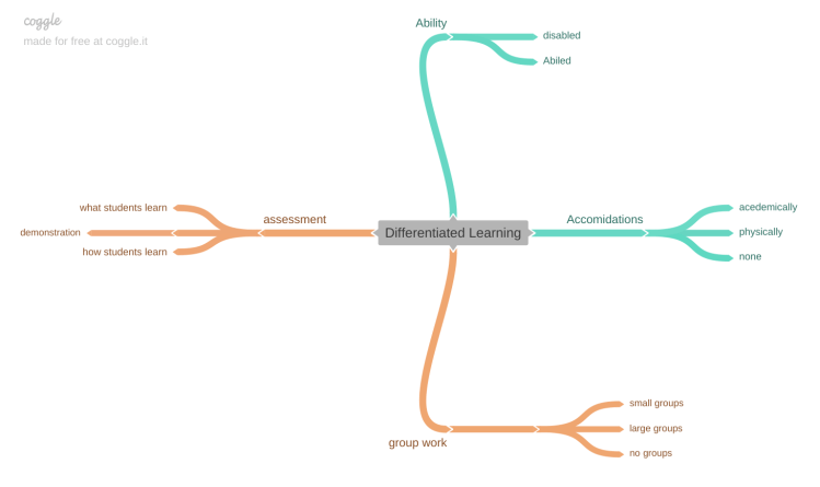 When I first started this class, Viewed differentiated learning as the instruction of individuals with all abilities, whether it be abled or disabled. Disability both physically or cognitively. We need to make certain accommodations to help learners reach their full potential. No student learns the same way so as educators, we need to adjust our teaching strategies to accommodate all individuals. Physically disabled students may require more of a classroom setting accommodation, such as higher table and desks or even sitting closer to the board. Being cognitively disability like myself, I have needed extra accommodations such as extra time on assignments or even a one to one tutor.